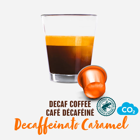 Discover our?DECAFFEINATO CARAMEL?coffee, a blend of the best, decaffeinated Latin American Arabicas, which has the same sweet & tender caramel aroma as our original Caramel flavoured coffee.